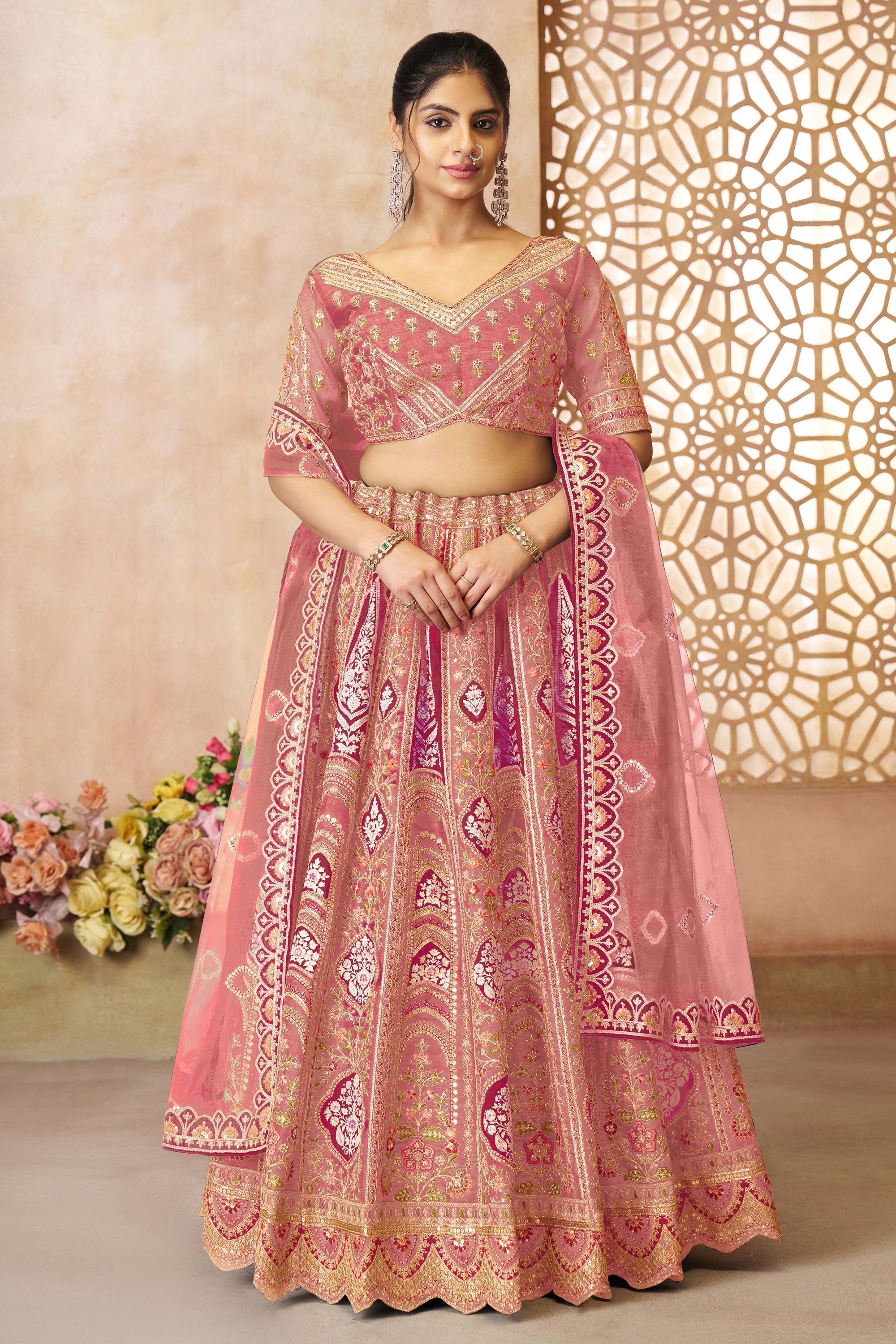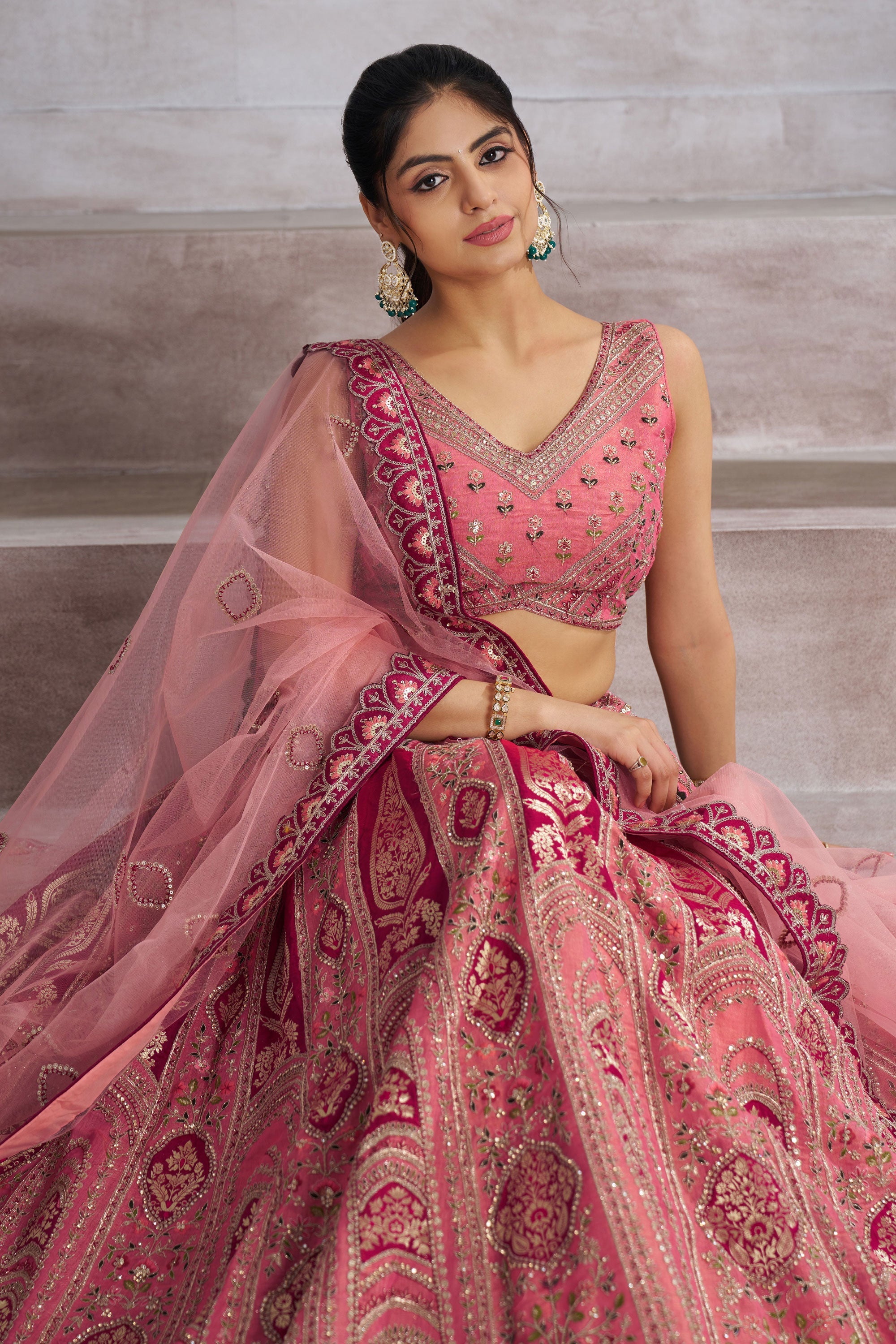 Banarasi Silk Pink Heavy Embroidered Designer Lehenga Choli
