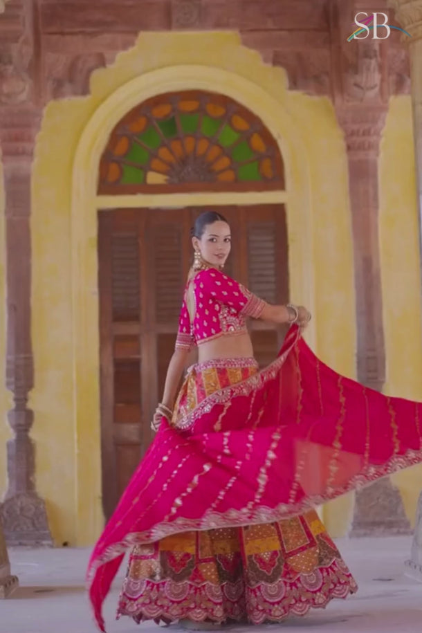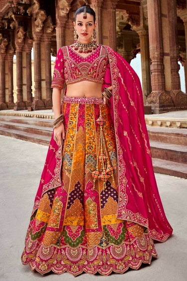 Banarasi Silk Wedding Wear Vivacious Bridal Lehenga In Multi Color