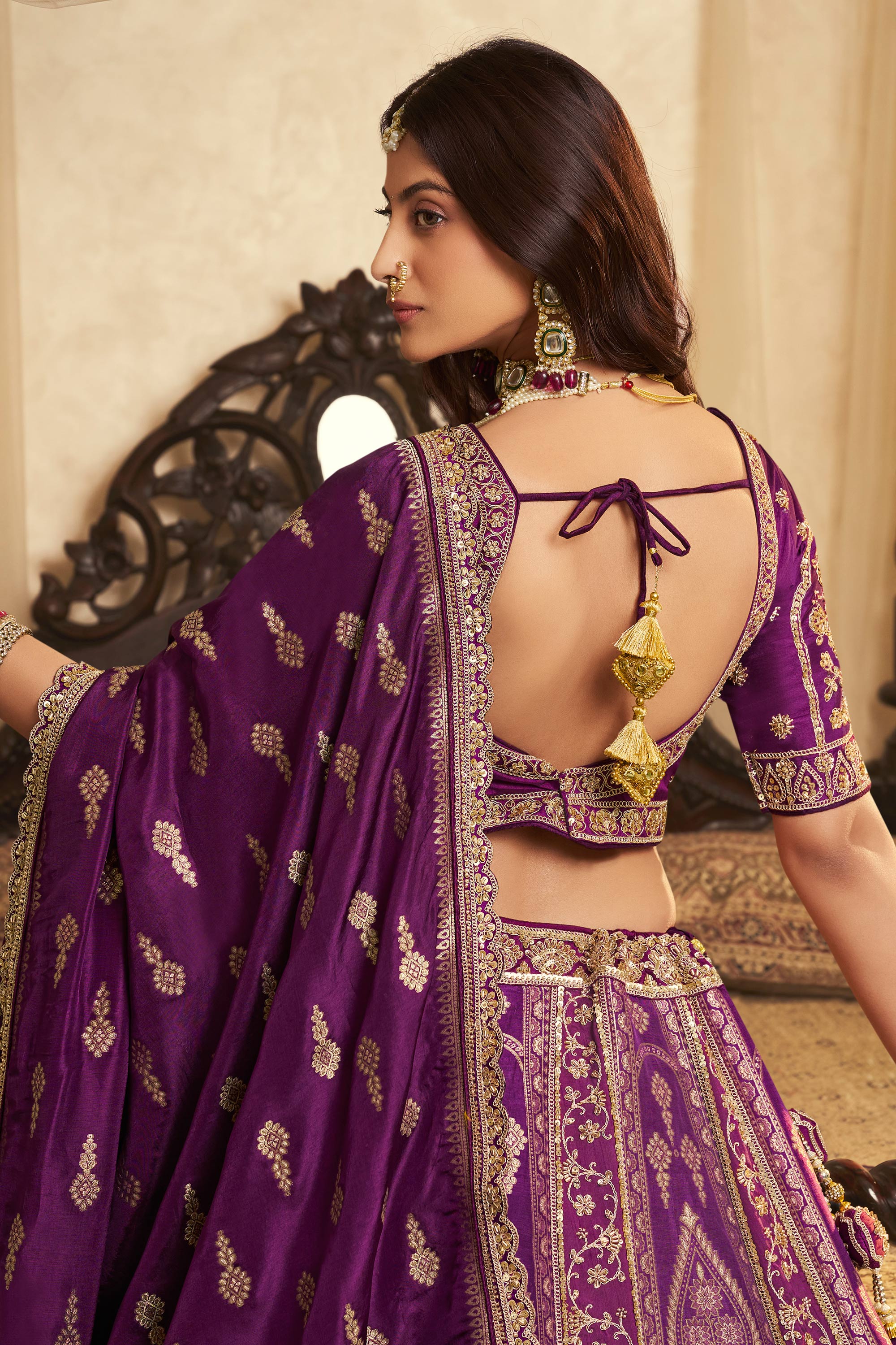 Beautiful Purple Banarasi Silk Wedding Lehenga With Designer Blouse