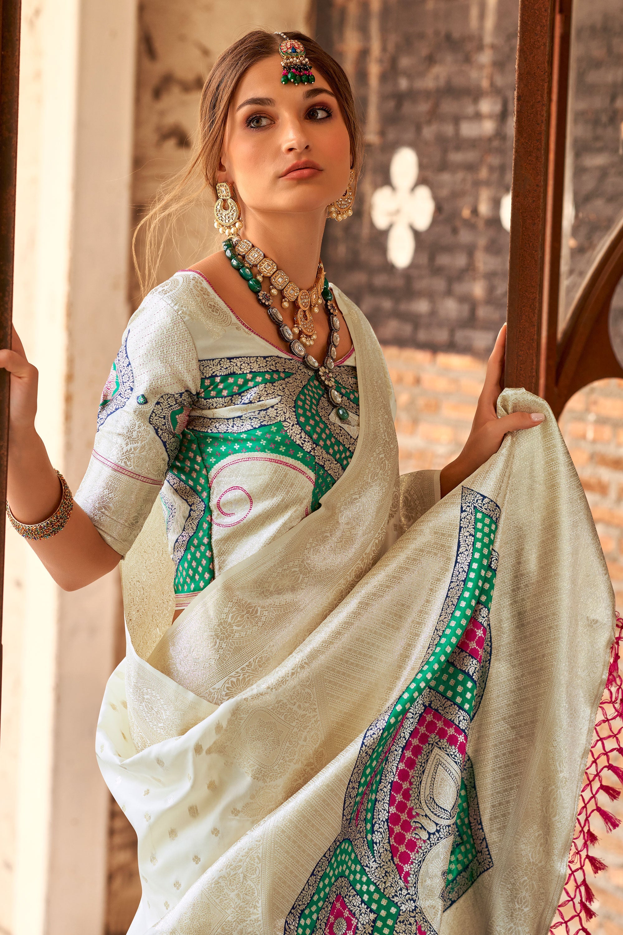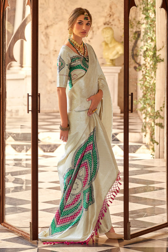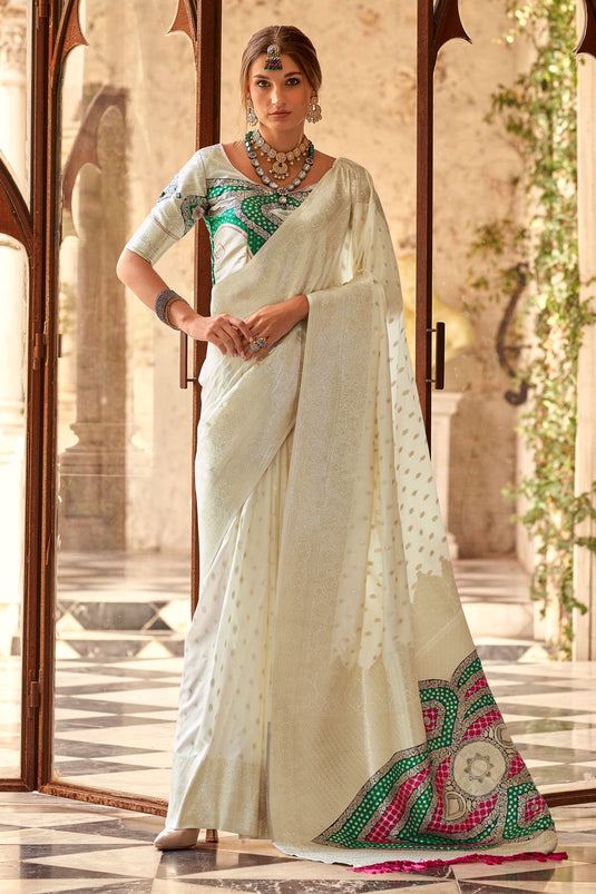 Beautiful White Soft Silk Zari Weaving Saree
