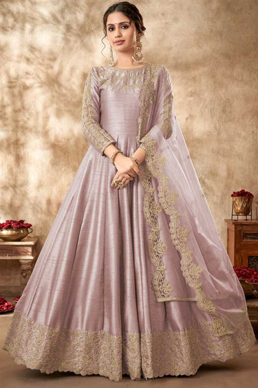 Beguiling Embroidered Work On Pink Color Art Silk Fabric Anarkali Suit
