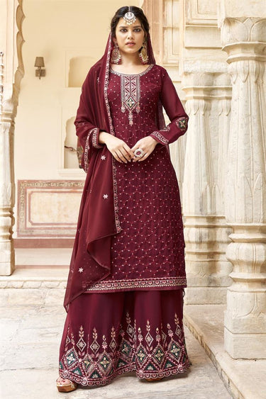 Beguiling Maroon Color Georgette Fabric Palazzo Suit