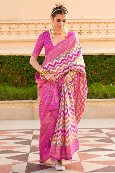 Beguiling Weaving Work On Pink Color Art Silk Fabric Saree