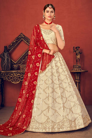 Beige Color Art Silk Fabric Fancy Embroidered Wedding Wear Lehenga Choli