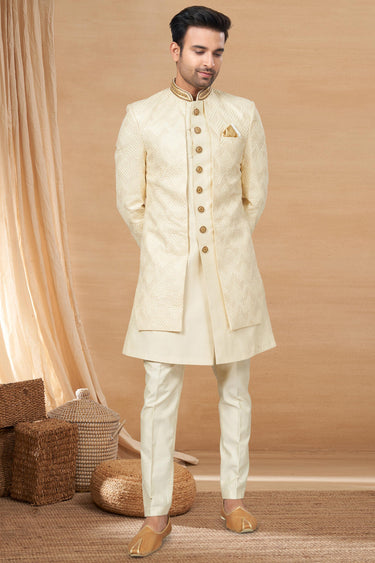 Beige Color Art Silk Fabric Striking Readymade Indo Western For Men