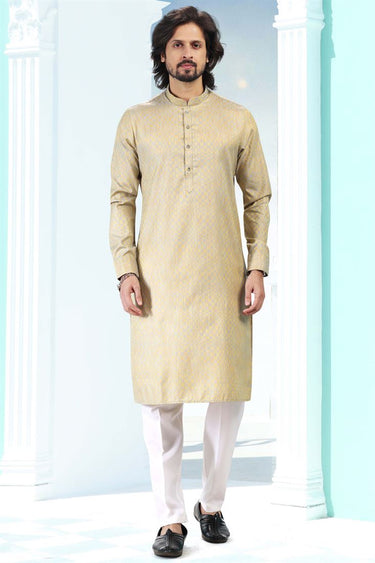 Beige Color Designer Art Silk Kurta Pyjama Set for Men