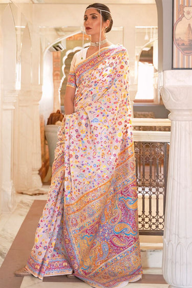 Beige Color Festival Wear Cotton Silk Fabric Spectacular Saree With Weaving Work