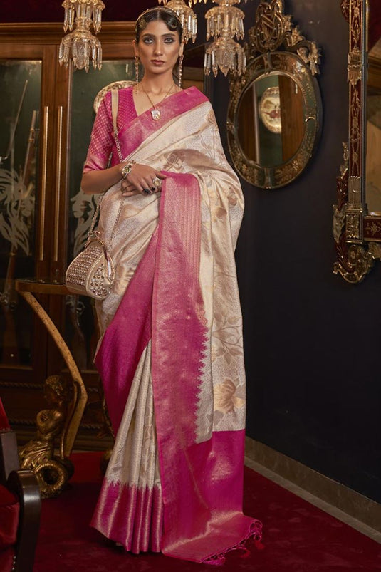 Beige Color Sangeet Wear Art Silk Fabric Saree With Tempting Weaving Work