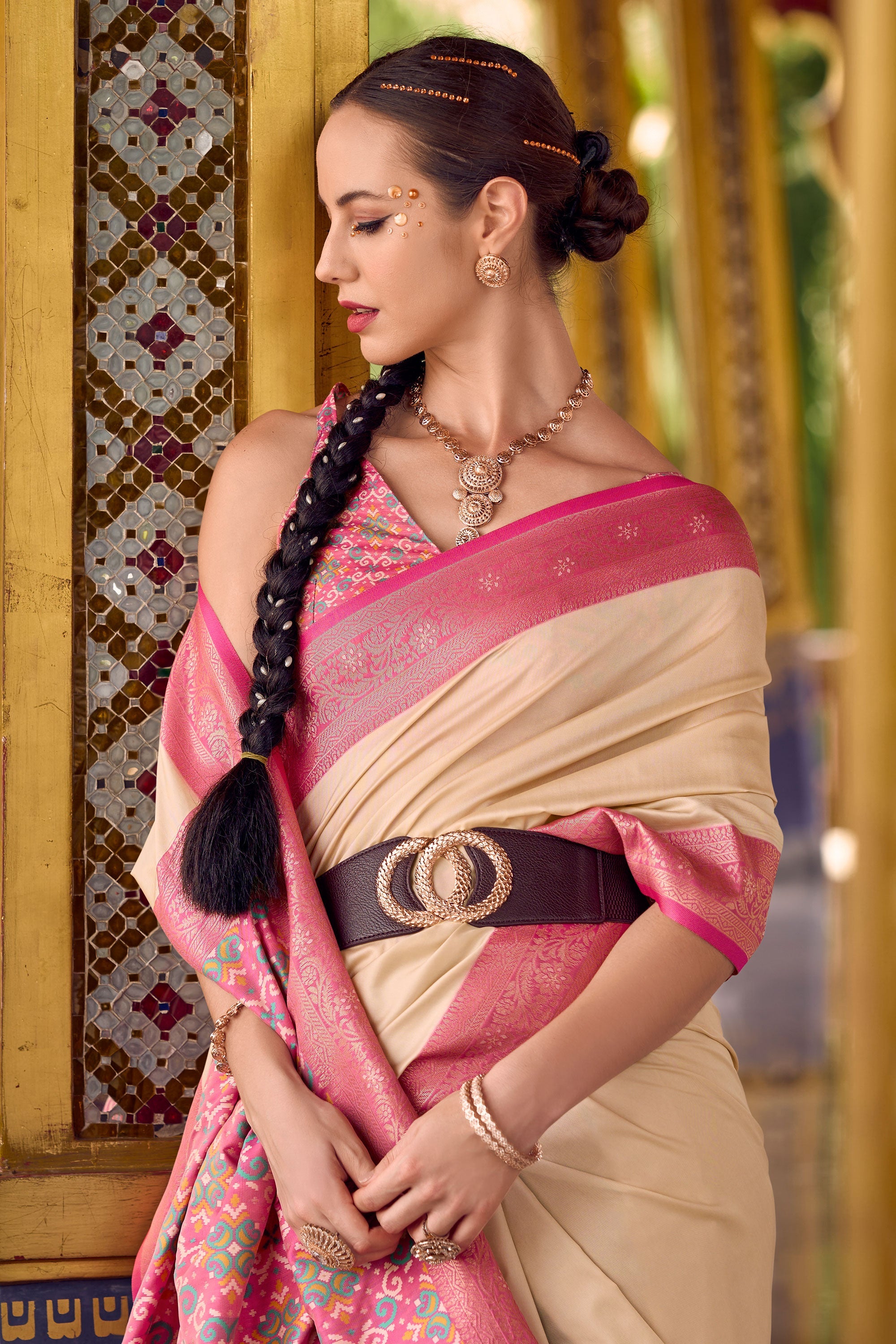 Beige Festive Wear Art Silk Zari Weaving Saree