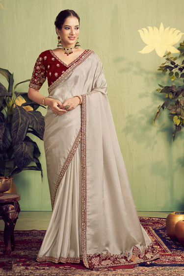 Beige Silk Fabric Border Work Saree For Wedding Wear