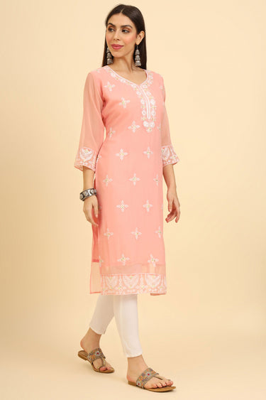 Bewitching Georgette Casual Wear Readymade Kurti In Peach Color