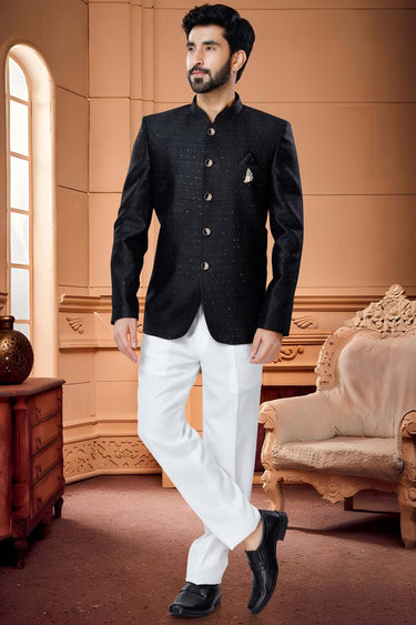 Black And White Jodhpuri Suit