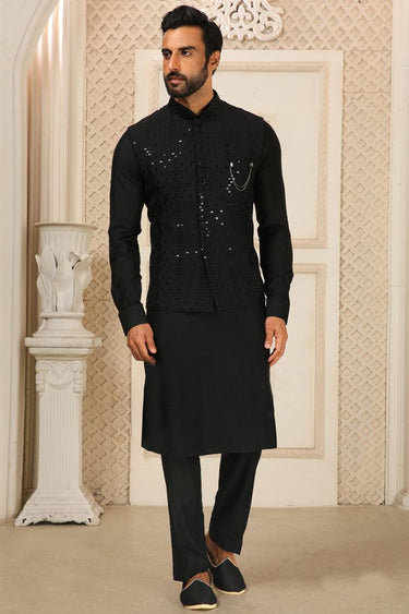 Black Color Art Silk Fabric Beatific Kurta Pyjama Jacket Set