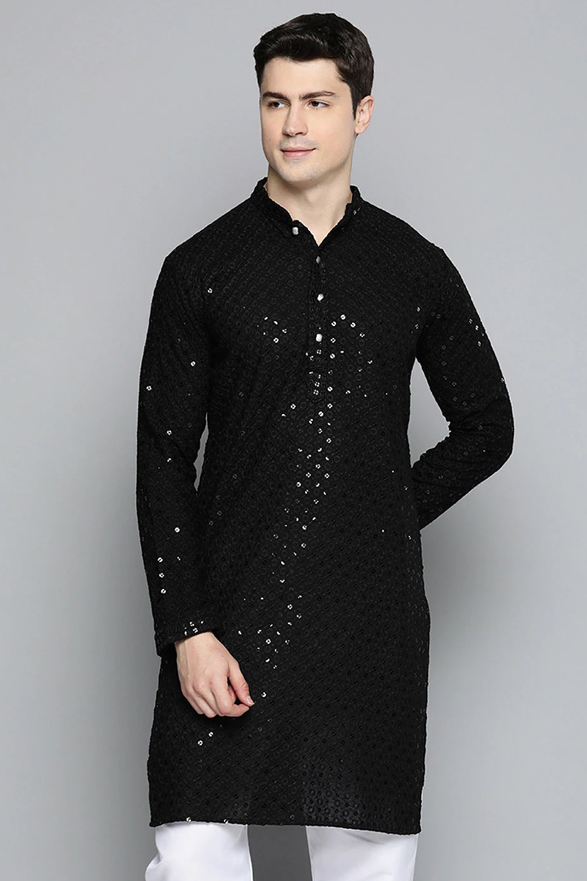Black Color Beautiful Rayon Fabric Wedding Wear Readymade Kurta Pyjama For Men