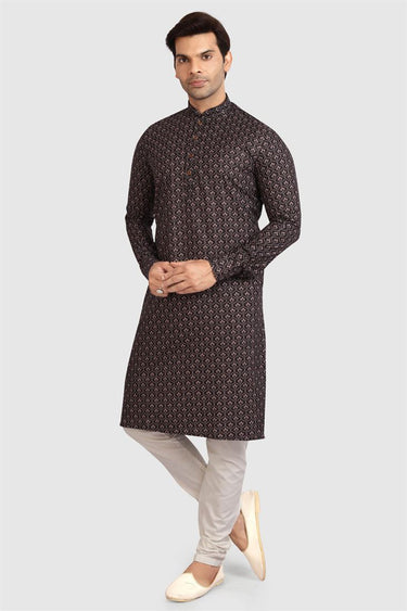 Black Color Cotton Fabric Festival Wear Printed Kurta Pyjama