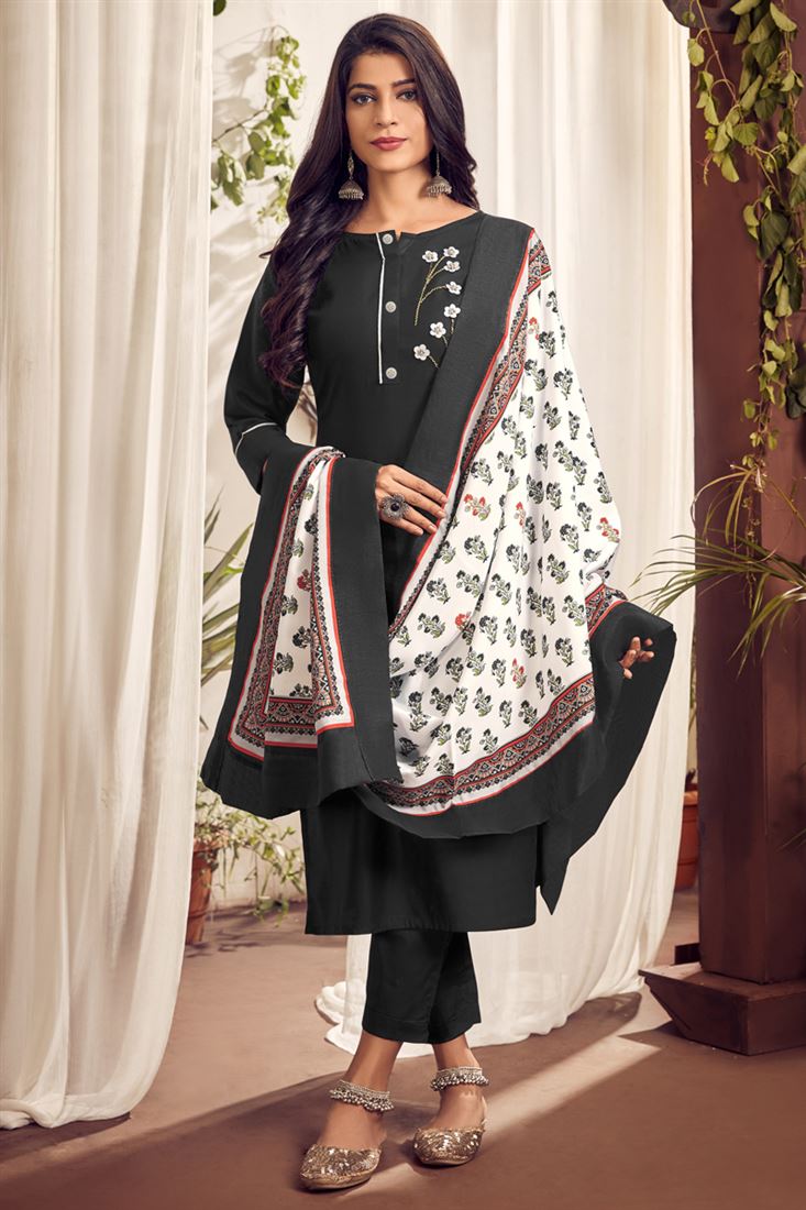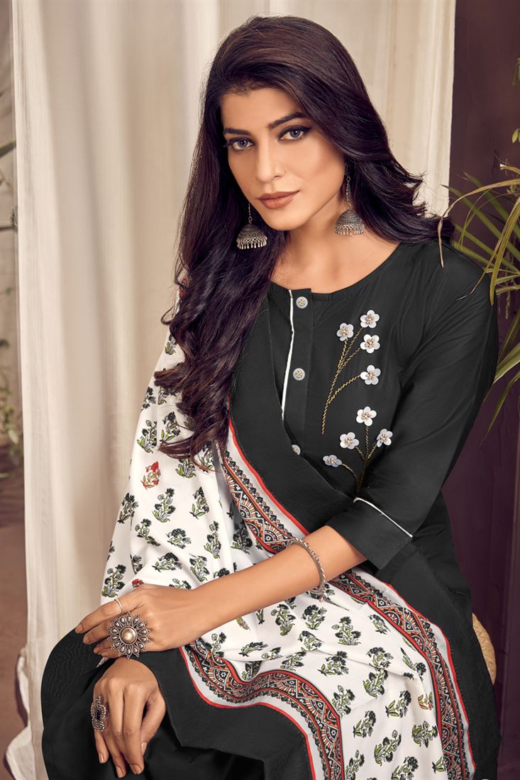 Black Color Cotton Fabric Festival Wear Readymade Salwar Kameez