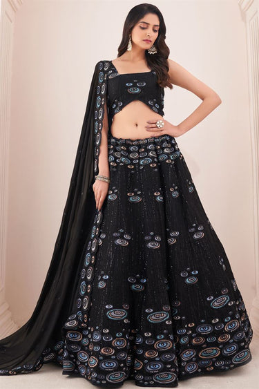 Made from high-quality Georgette Fabric, this Black Lehenga is not only luxurious but also comfortable to wear. The fabric drapes gracefully and enhances your silhouette, allowing you to move with elegance and ease.