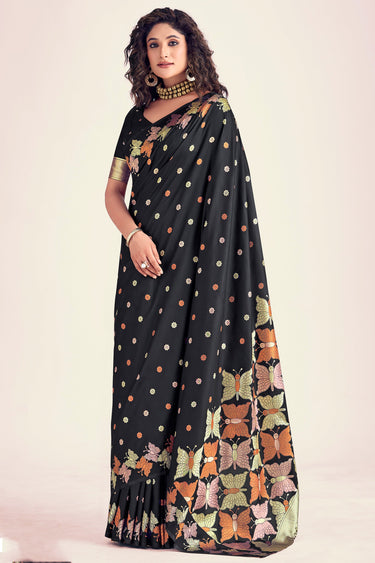 Black Color Glorious Printed Banarasi Style Silk Saree