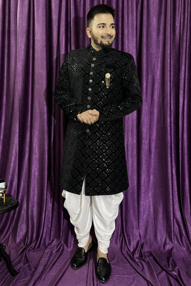 Black Color Velvet Fabric Wedding Wear Readymade Men Peshawari Style Indo Western