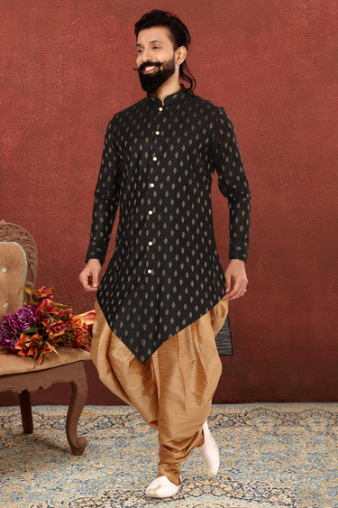 Black Gorgeous Cotton Silk Fabric Wedding Wear Readymade Indo Western For Men