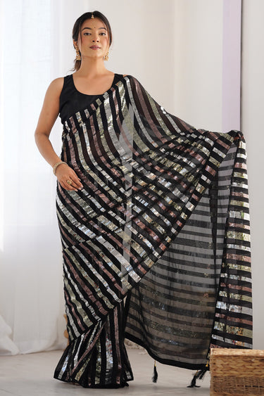 Experience elegance with Attrective Look These Party Wear Saree in Fine Colored. Made from premium georgette, this saree promises comfort and style. The accompanying Mono Banglori blouse adds a sleek touch. Beautified with designer heavy sequins embroidery work, this saree stands out in any gathering. The saree is 5.5 meters long, and the blouse is 0.80 meters, both unstitched for your custom needs. Perfect for functions and parties. Ensure to dry clean for maintaining quality. Slight color variation may occur.