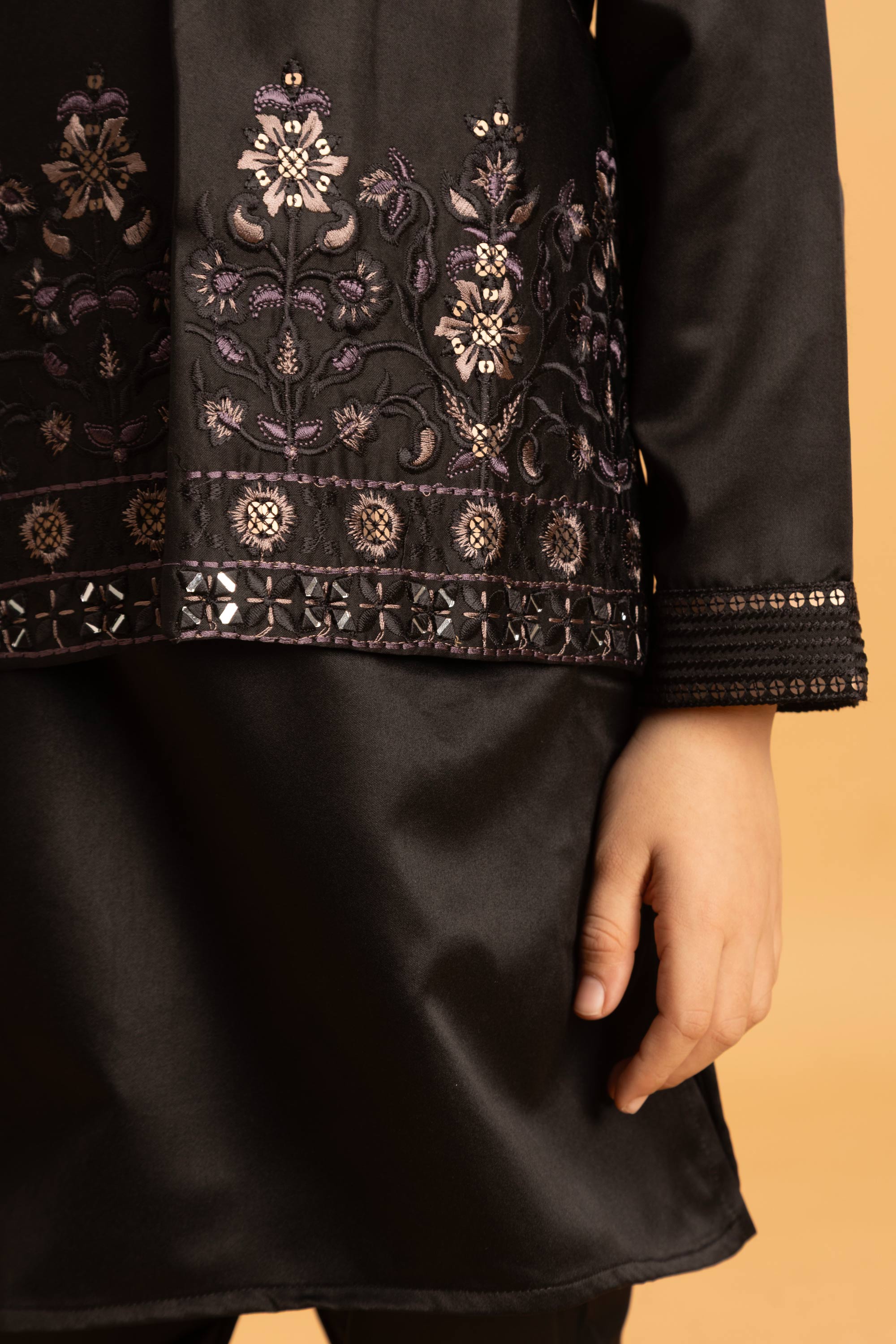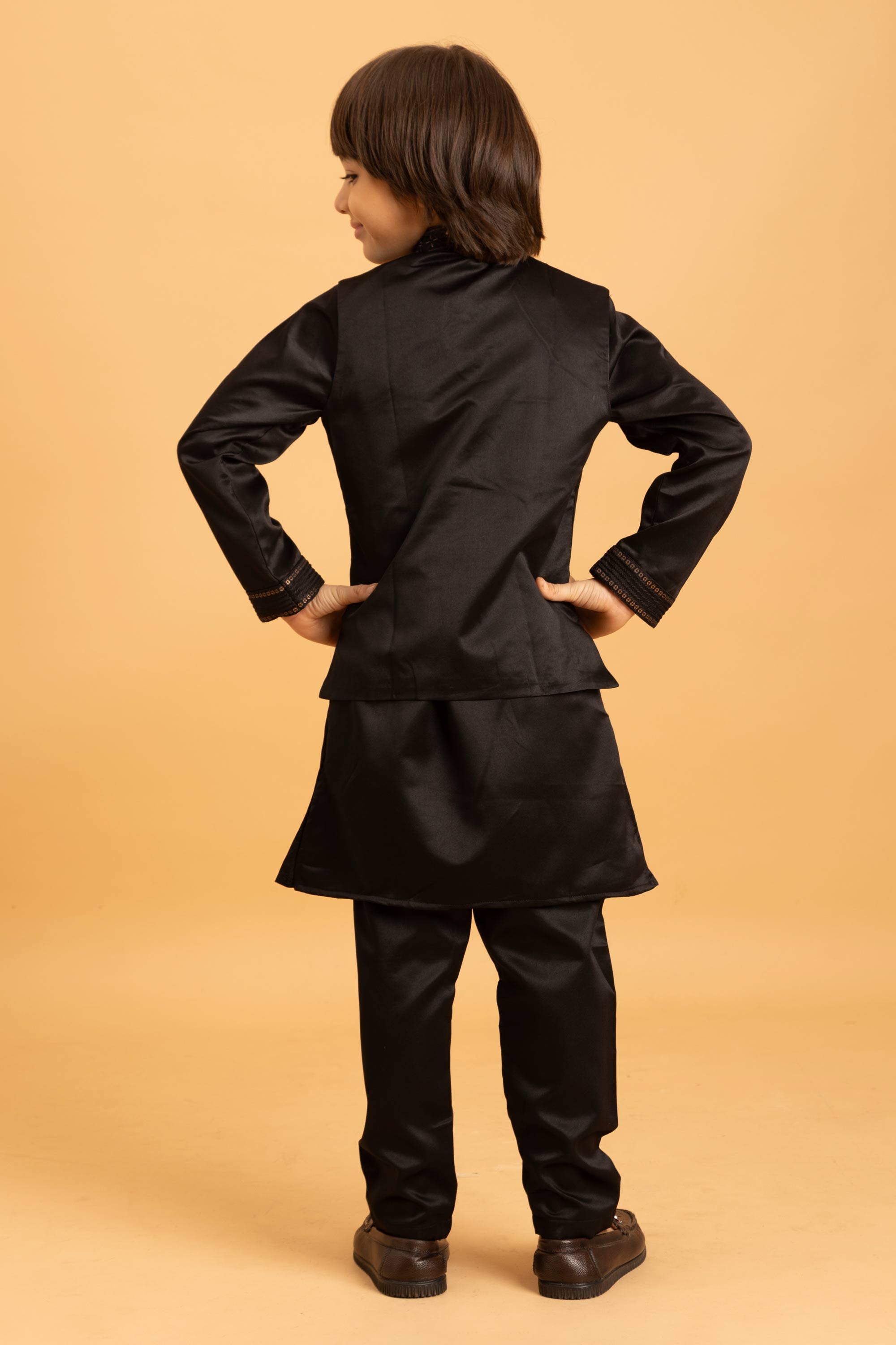 Black Satin Sangeet Function Wear Boys Designer Readymade Kurta Pyjama With Jacket