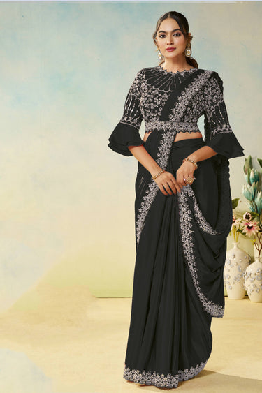 Black Wedding Wear Satin Silk Border Work Readymade Saree