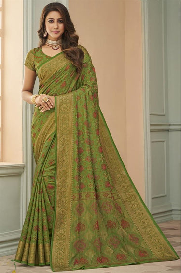 Blazing Green Color Festive Wear Art Silk Fabric Weaving Work Saree