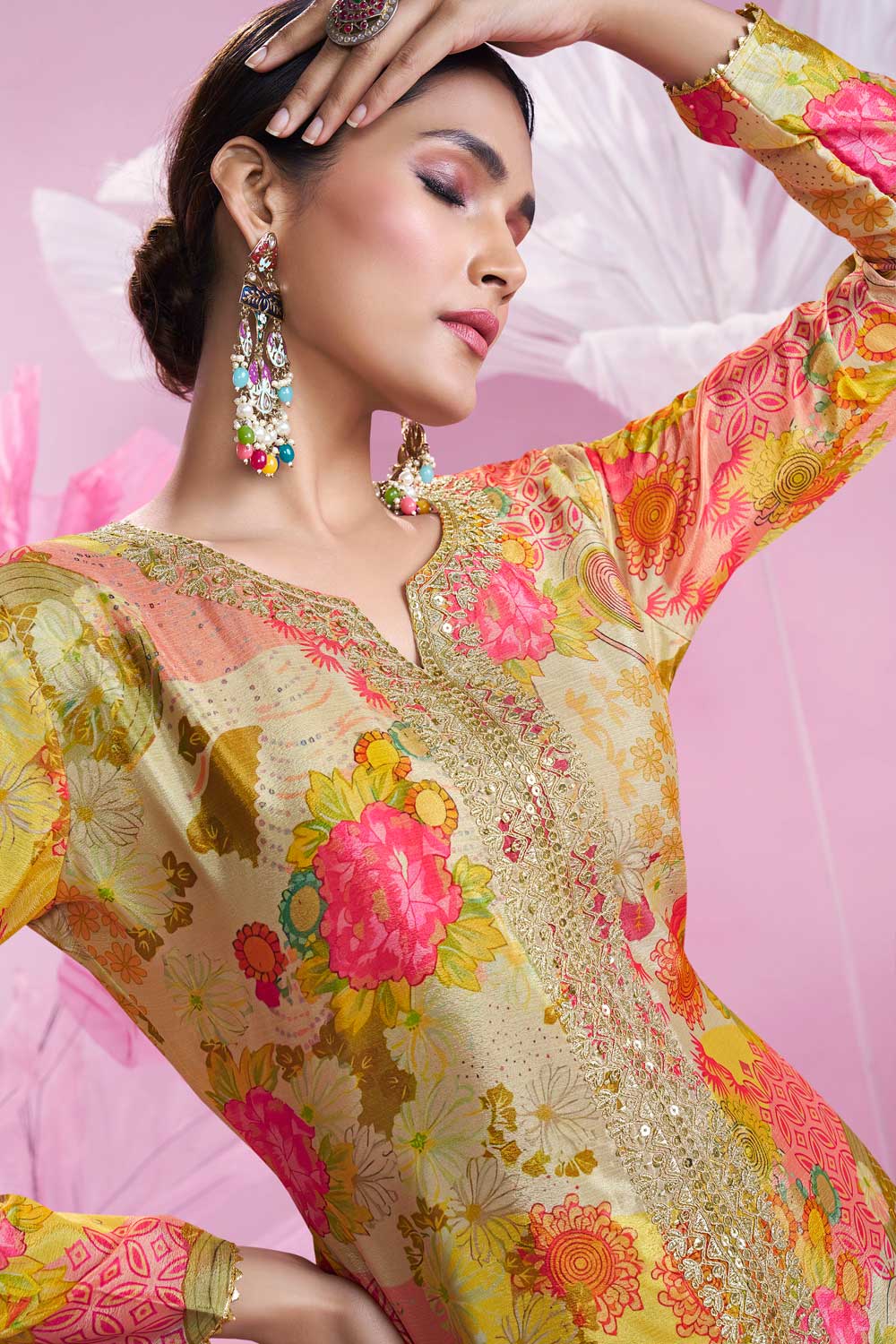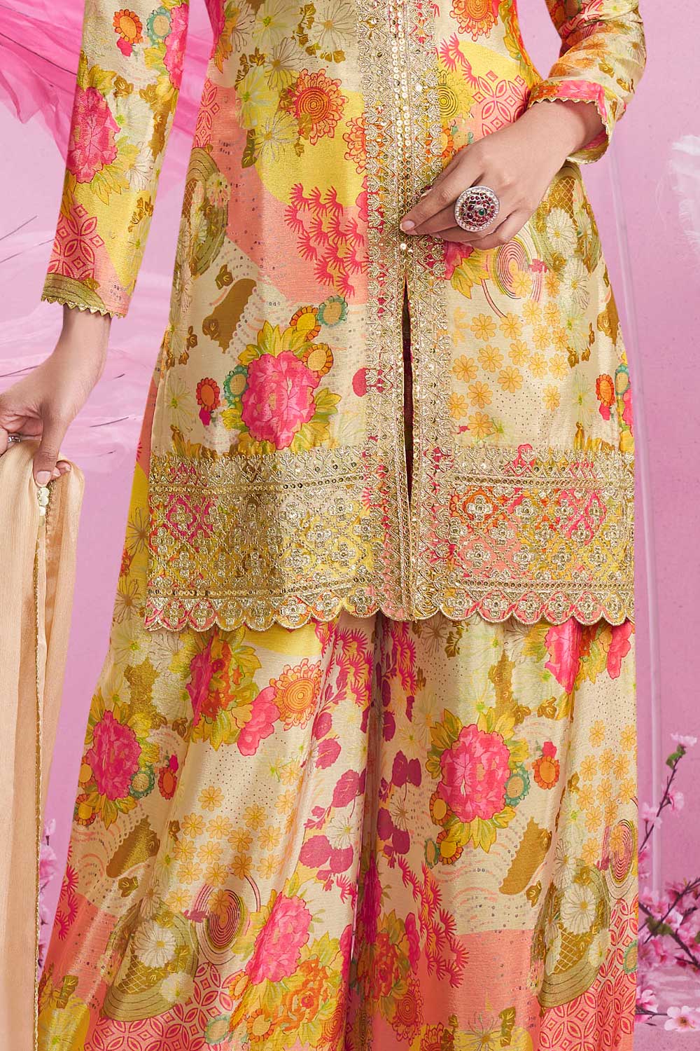 Blazing Multi Color Festive Wear Readymade Chinon Silk Palazzo Suit