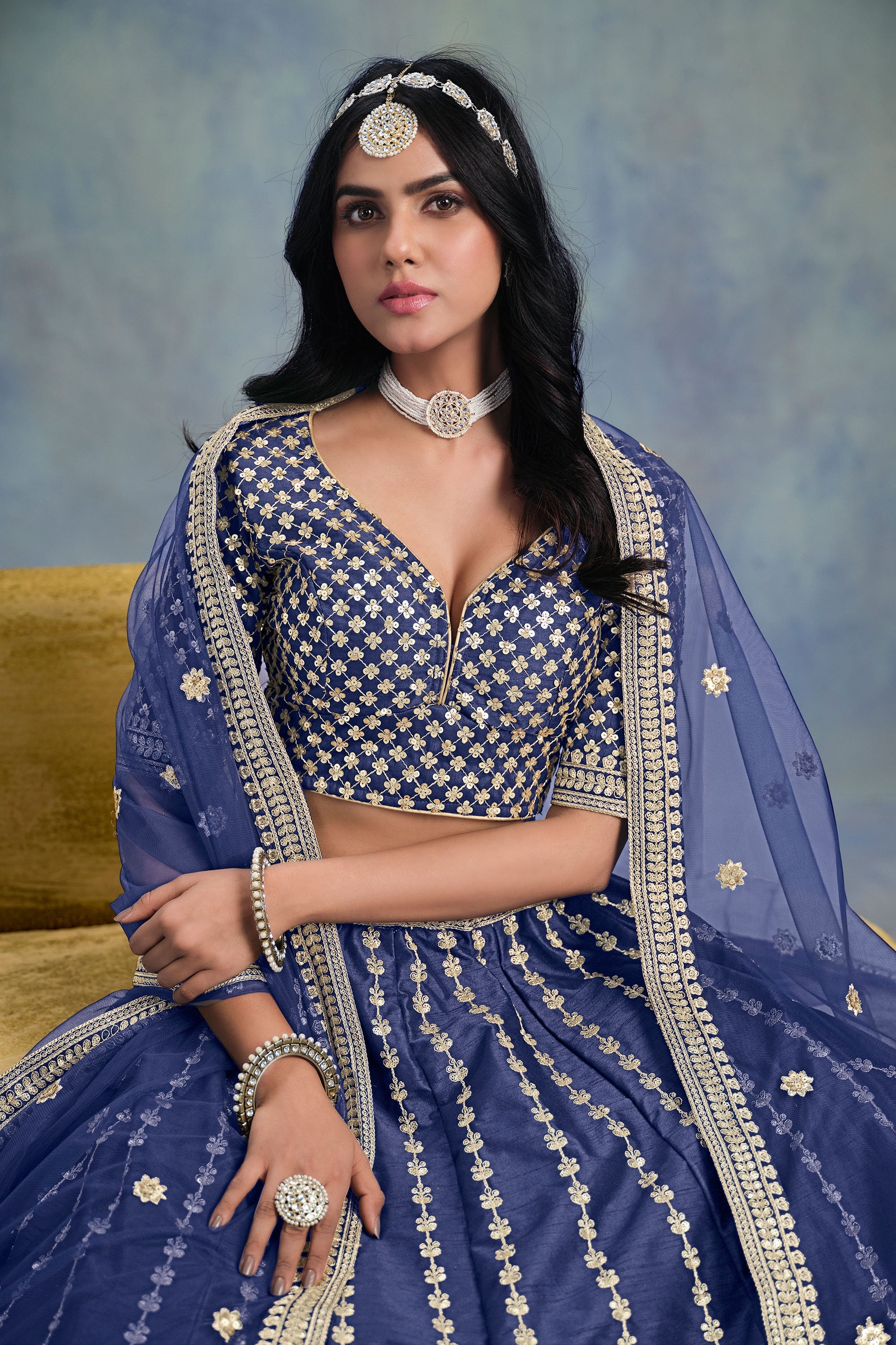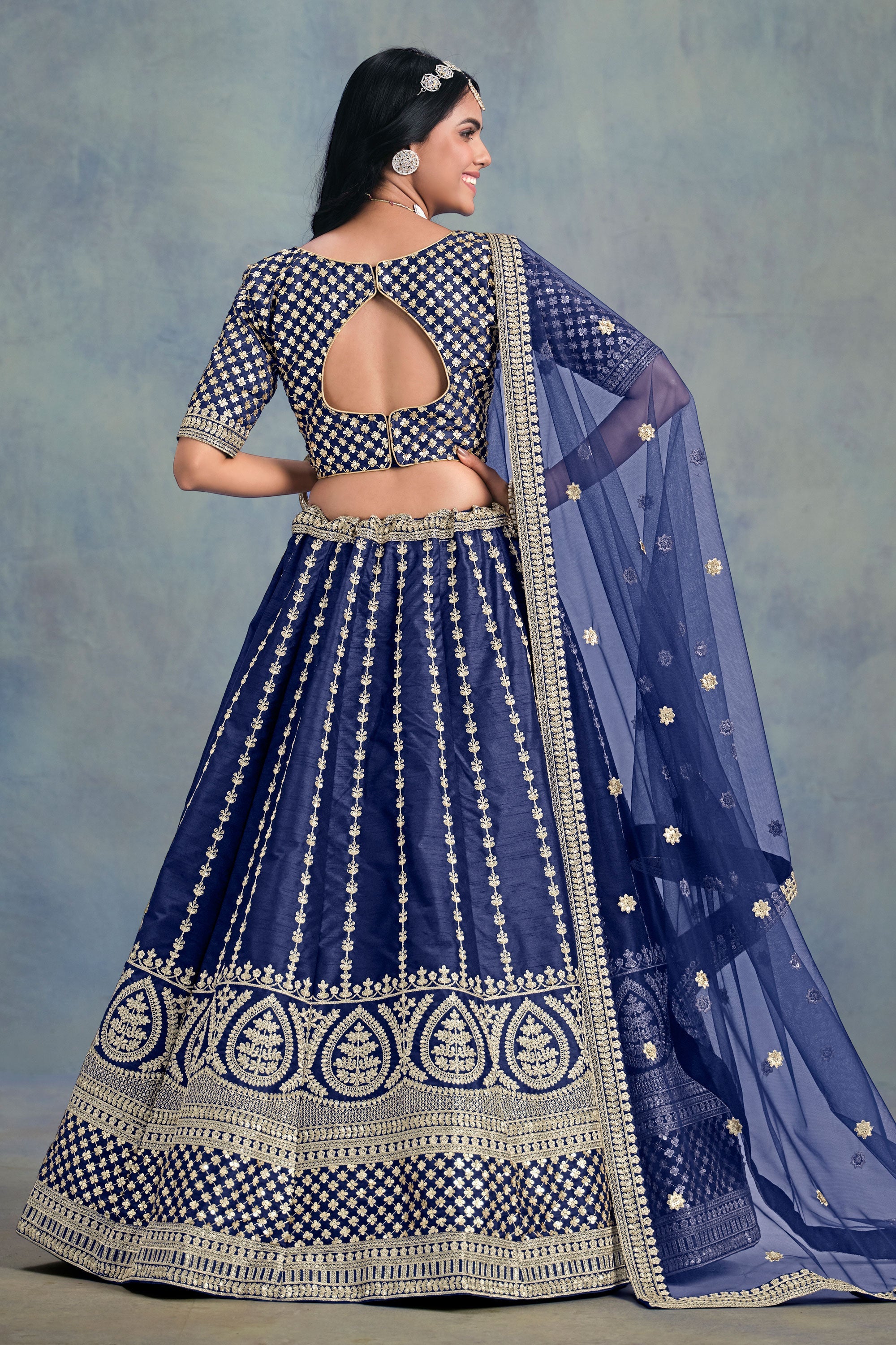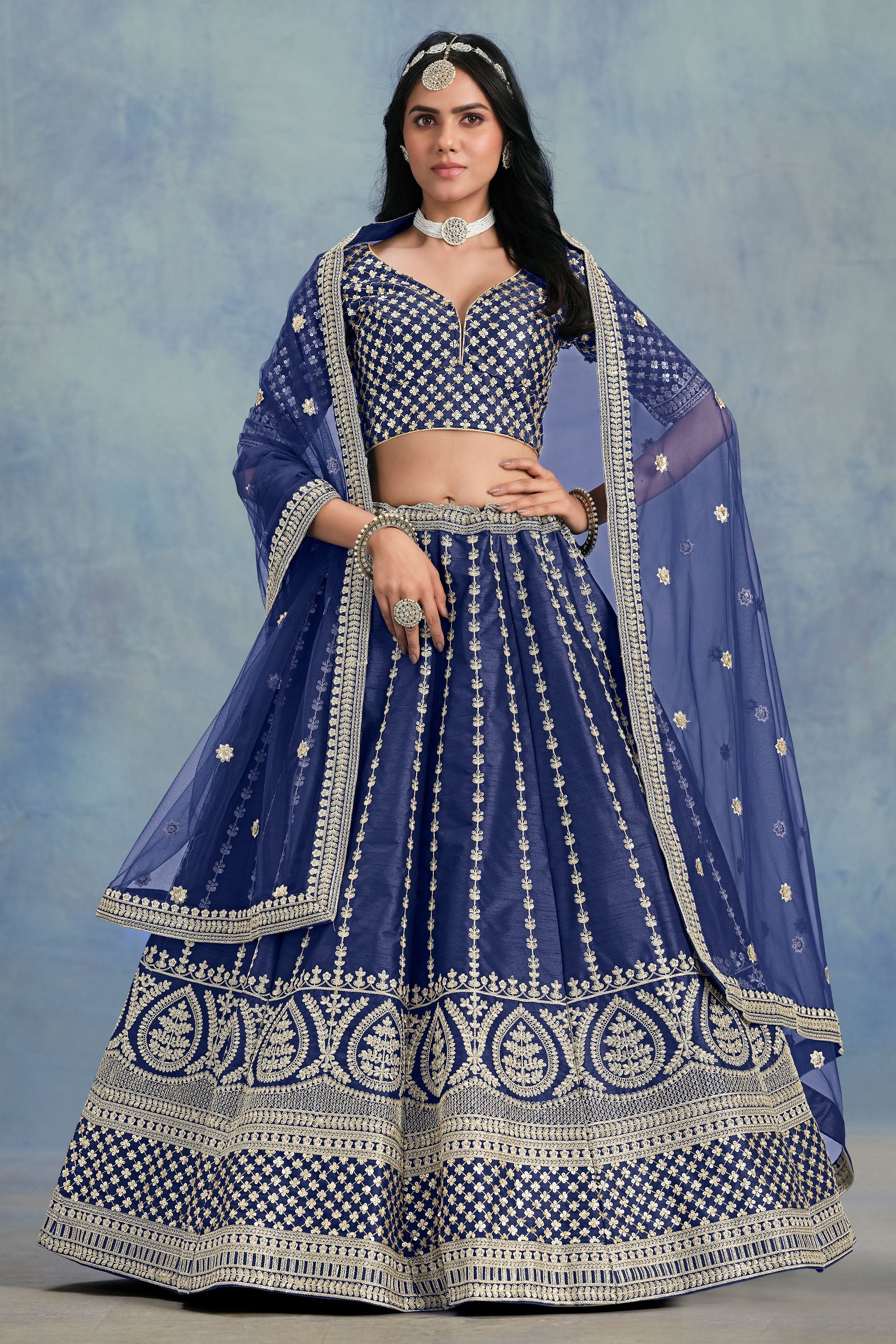 Blue Art Silk Sangeet Wear Embroidered Chaniya Choli