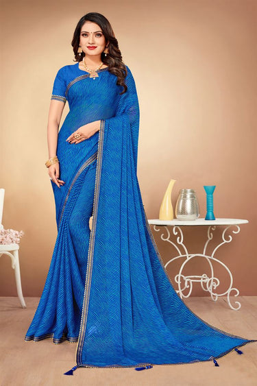 Blue Color Awesome Casual Wear Chiffon Light Weight Saree