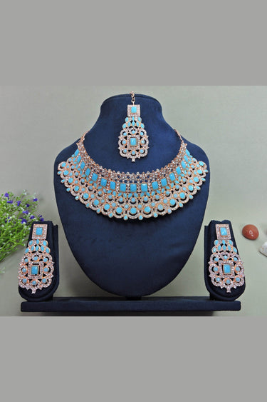 Blue Color Princely Alloy Necklace With Earrings and Mang Tikka