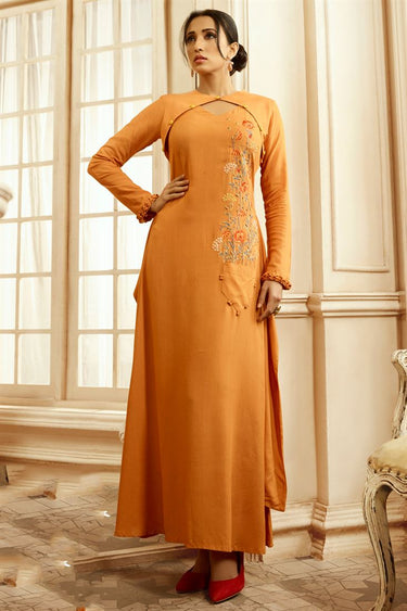 Boho Chic Rayon Cotton Gown Style Kurti in Mustard Color
