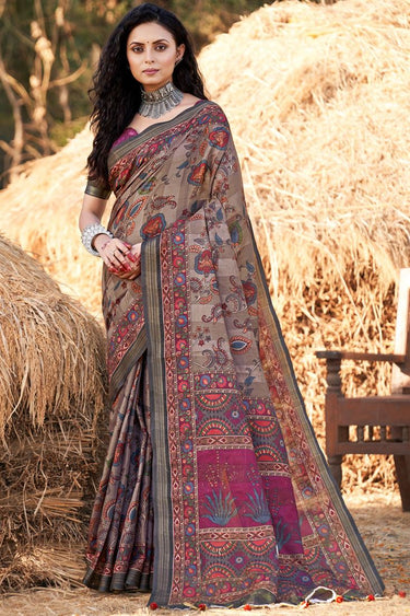 Brown Color Cotton Fabric Fashionable Printed Casual Saree