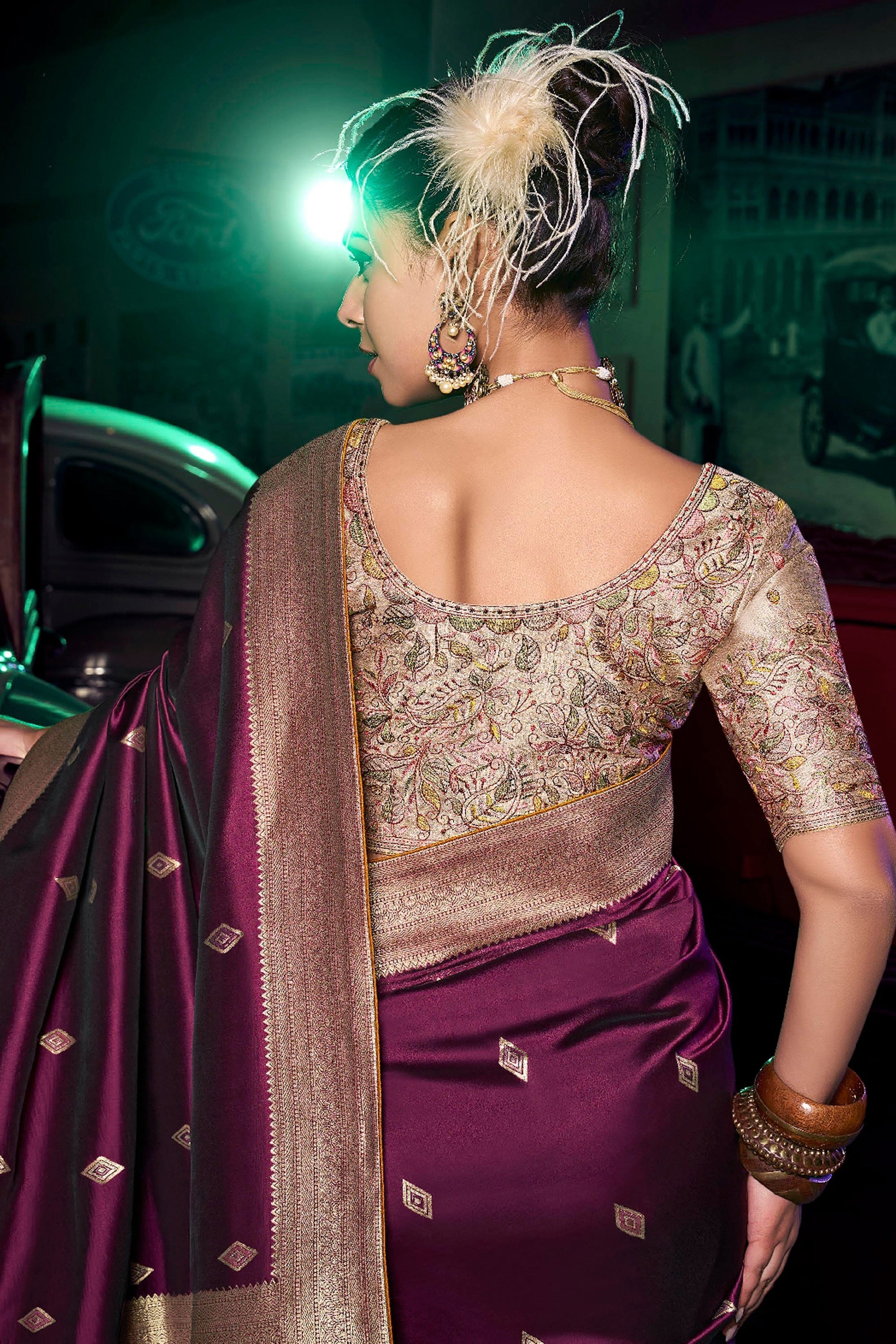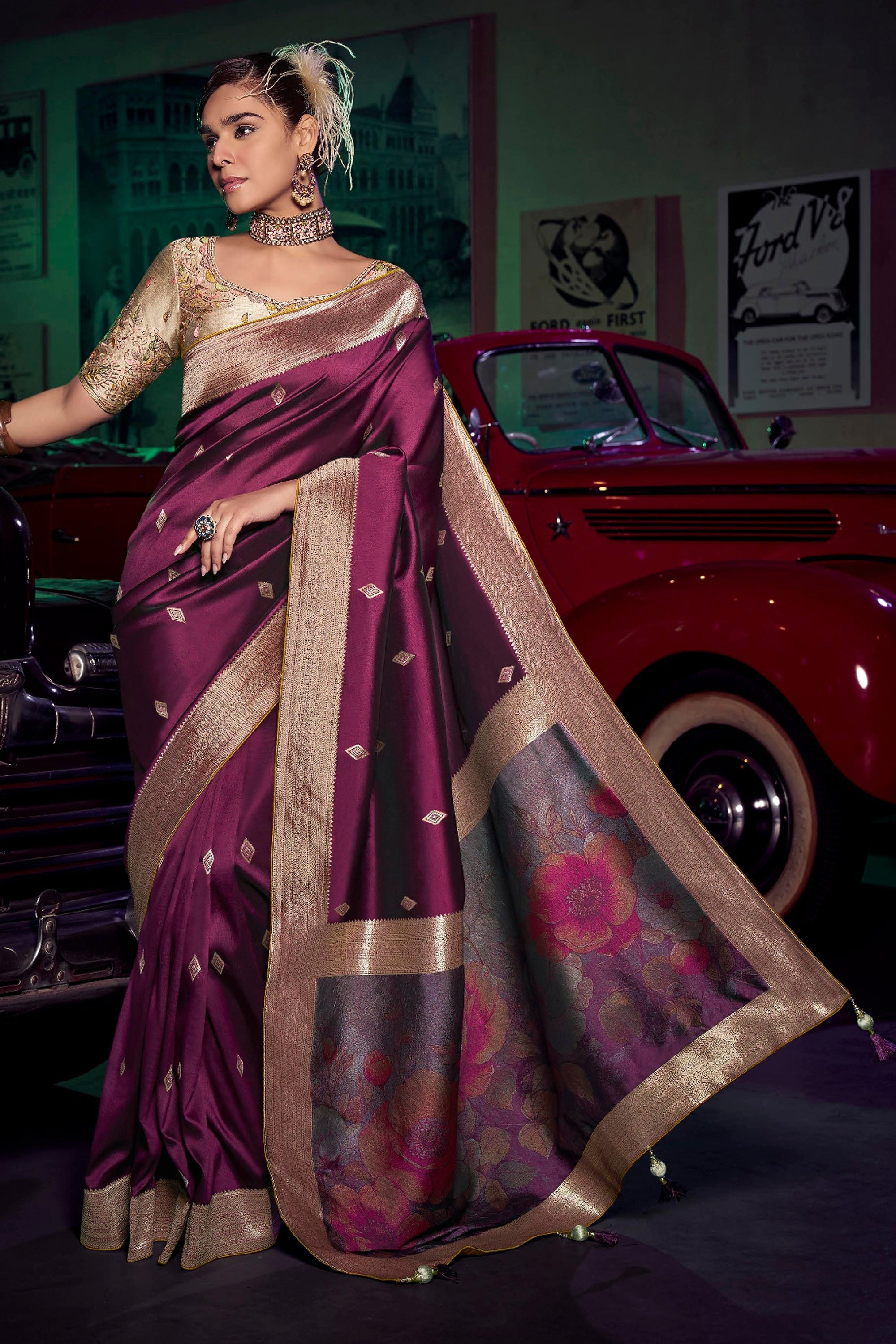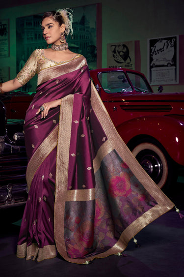 Burgundy Silk Weaving Border Work Festive Wear Saree