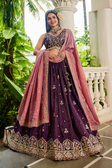 Burgundy Tissue Sequins Embroidered Gorgeous Wedding Lehenga Choli