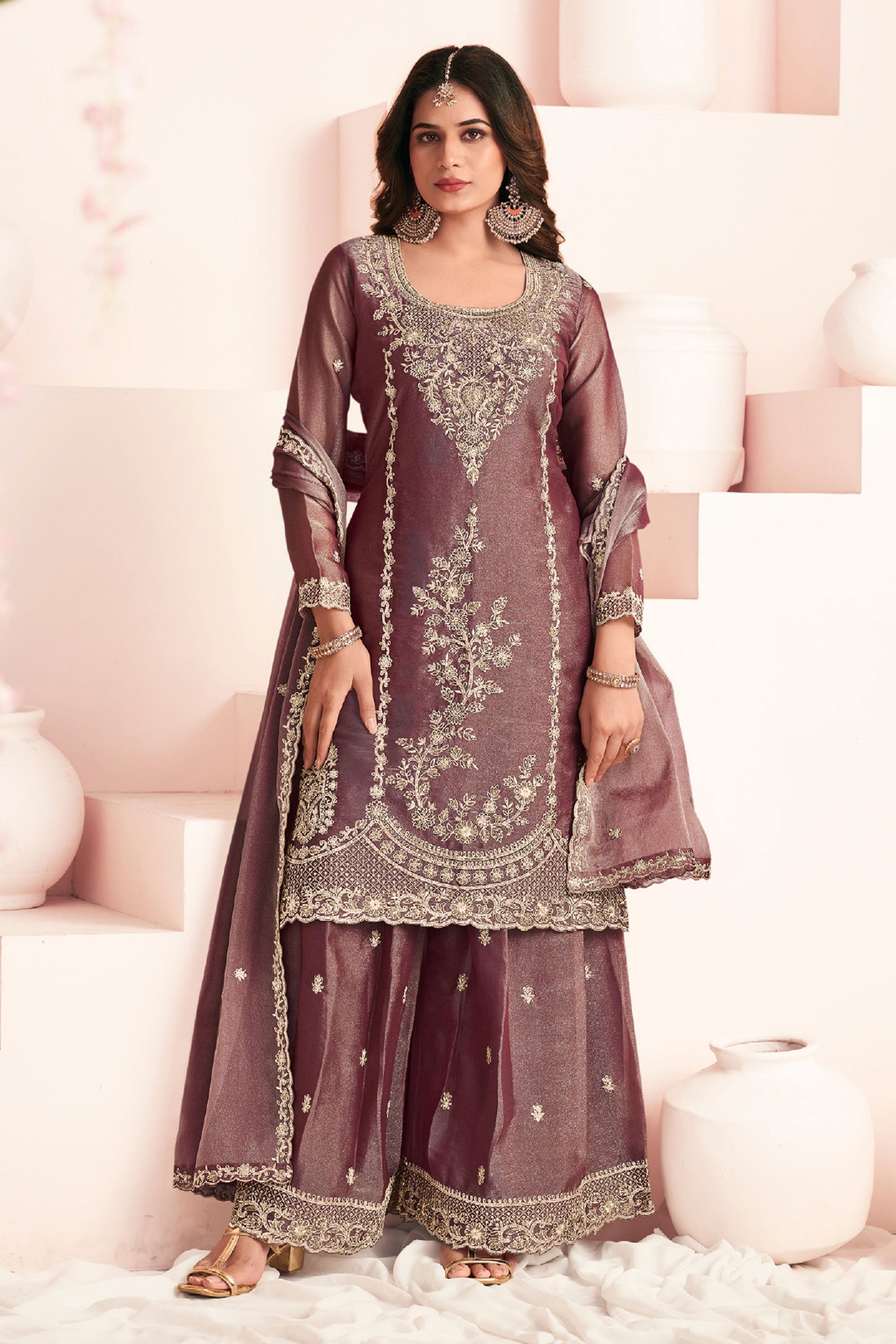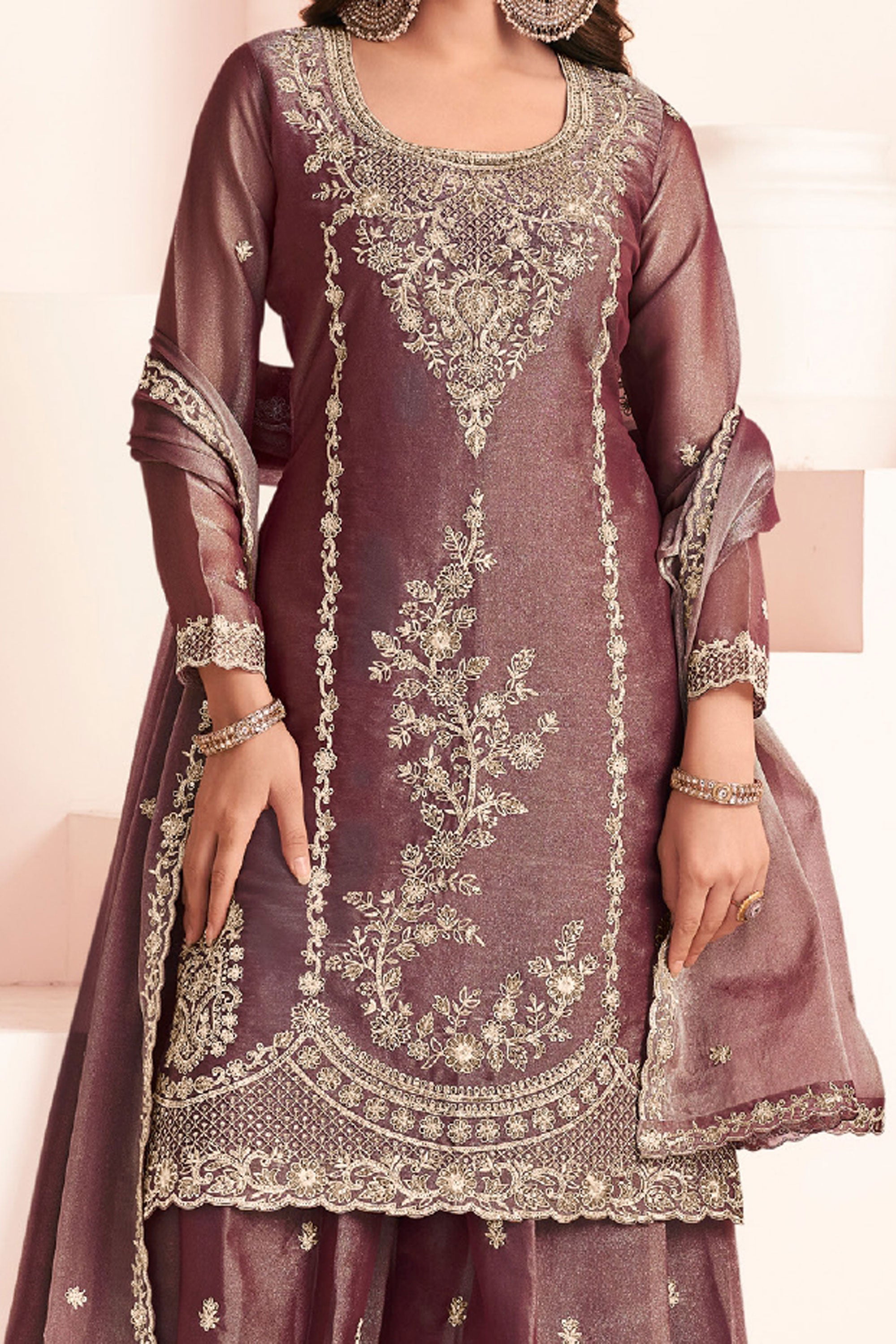Step into elegance with this beautifully designed Readymade Palazzo Suit, perfect for special functions and festive occasions. Crafted from premium Art Silk fabric, the top features delicate embroidery work that adds a touch of sophistication and charm to the outfit. It is paired with a comfortable Art Silk palazzo bottom and a graceful Art Silk dupatta, creating a stylish and well-coordinated ethnic look. This outfit offers the perfect blend of traditional beauty and modern comfort, making it an ideal choice for celebrations and gatherings. Note: Due to digital photography and different screen settings, slight color variations may occur.