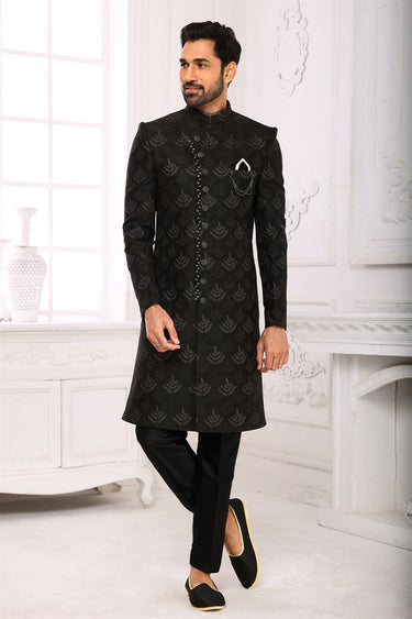 Captivating Brocade Fabric Black Color Indo Western For Men