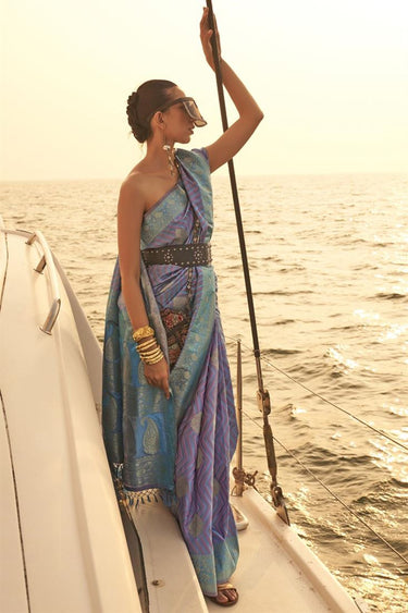 Captivating Satin Fabric Weaving Work Party Wear Saree In Purple Color
