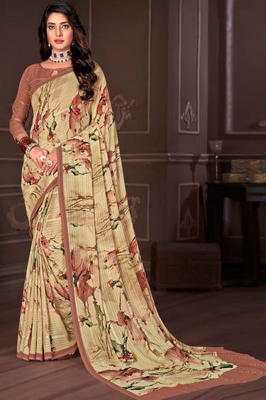 Casual Wear Georgette Fabric Beige Color Saree With Superior Digital Printed Work