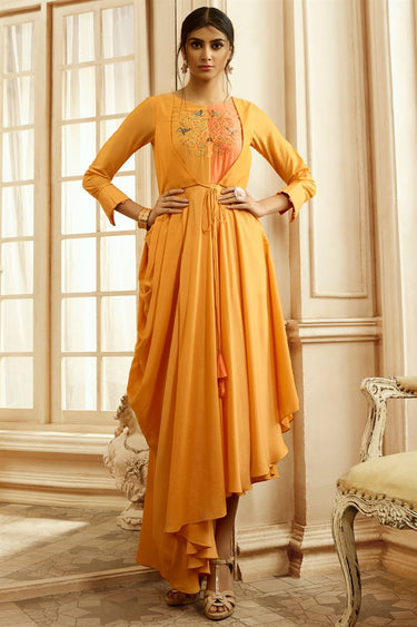Chic Rayon Cotton Gown Style Kurti in Neutral Yellow Color