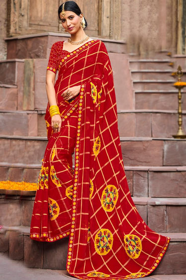 Chiffon Fabric Red Color Delicate Light Weight Printed Saree