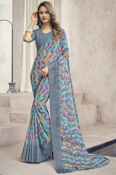Chiffon Fabric Wonderful Casual Look Printed Saree In Grey Color