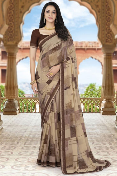 Chikoo Color Lavish Georgette Floral Printed Saree