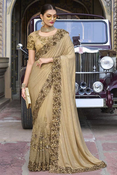 Chikoo Color Sequins Work On Attractive Saree In Net Fabric