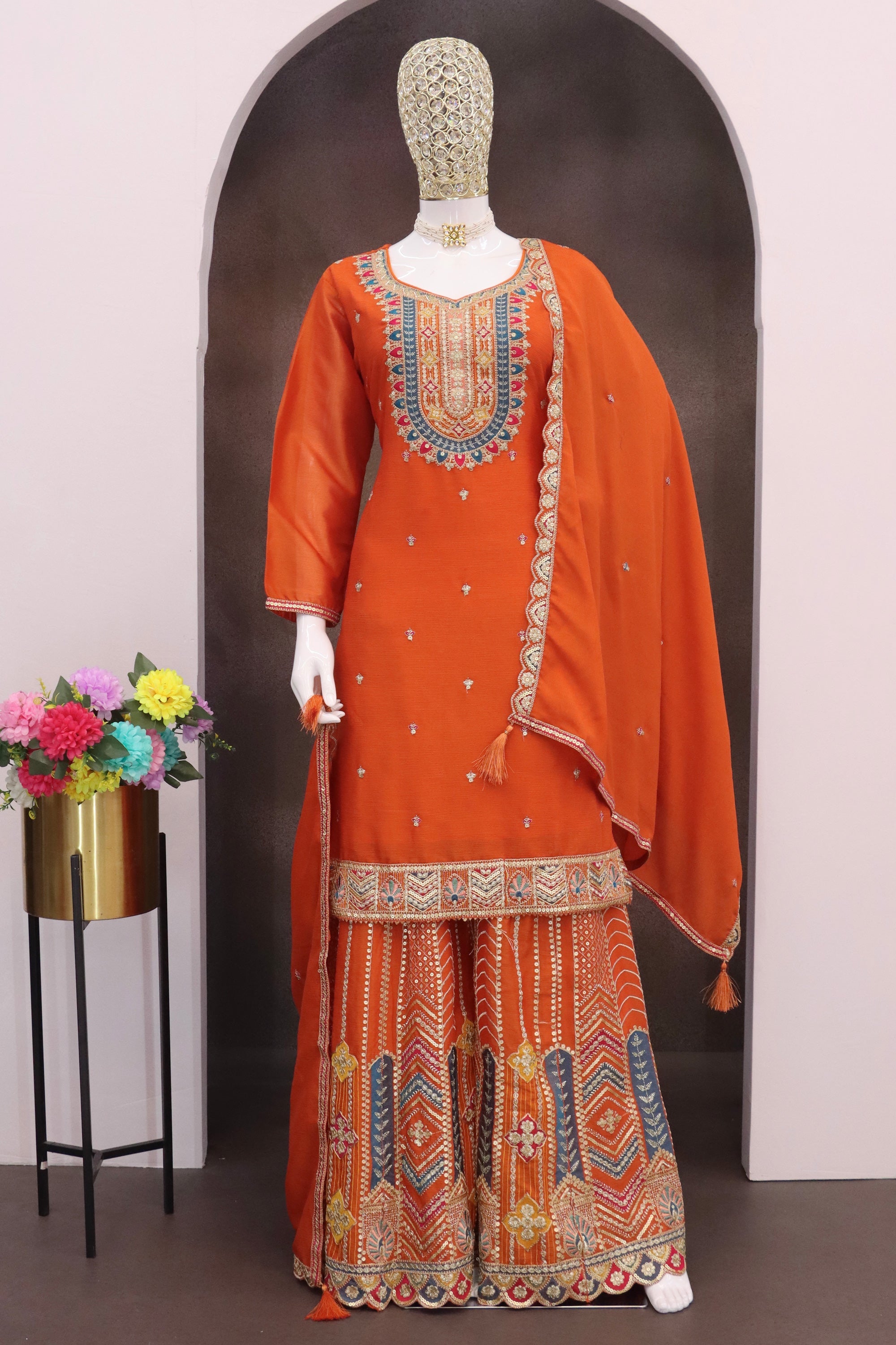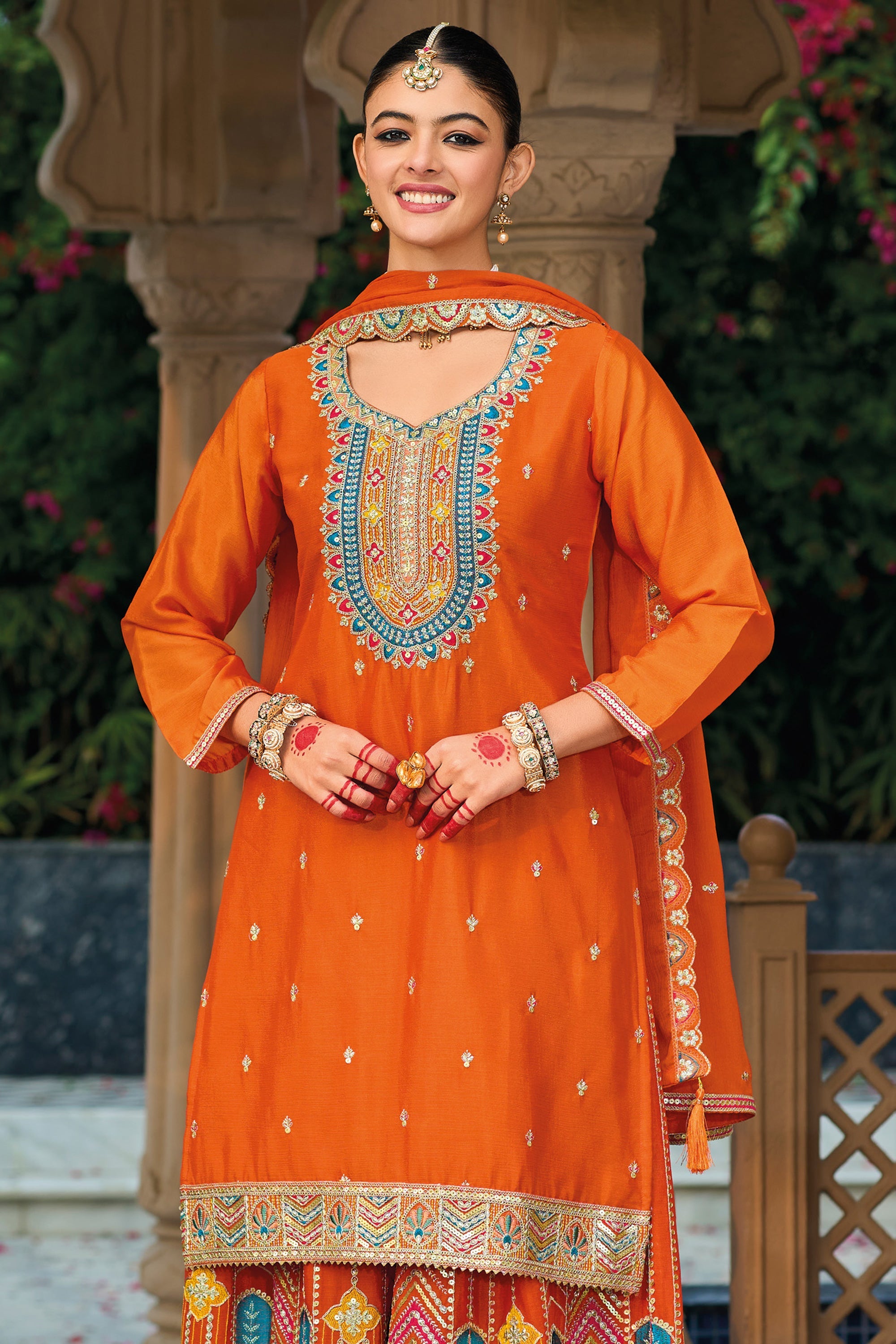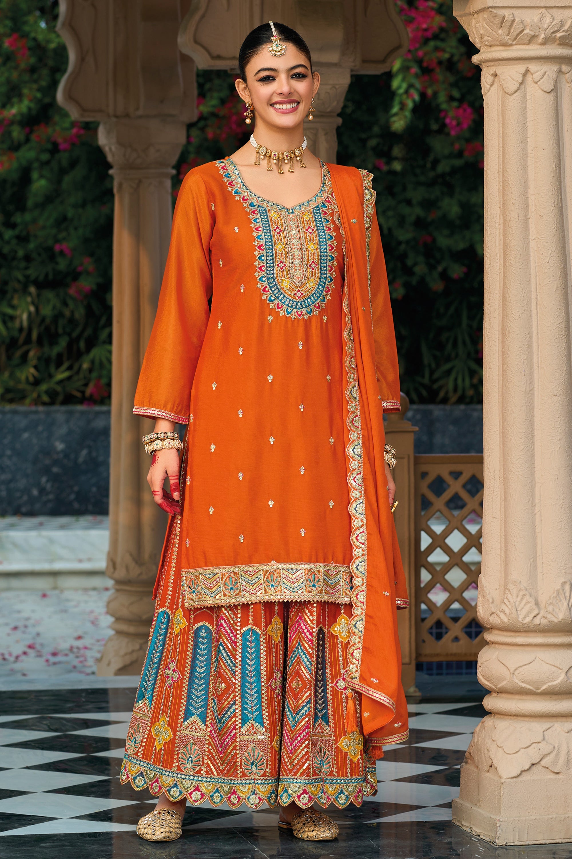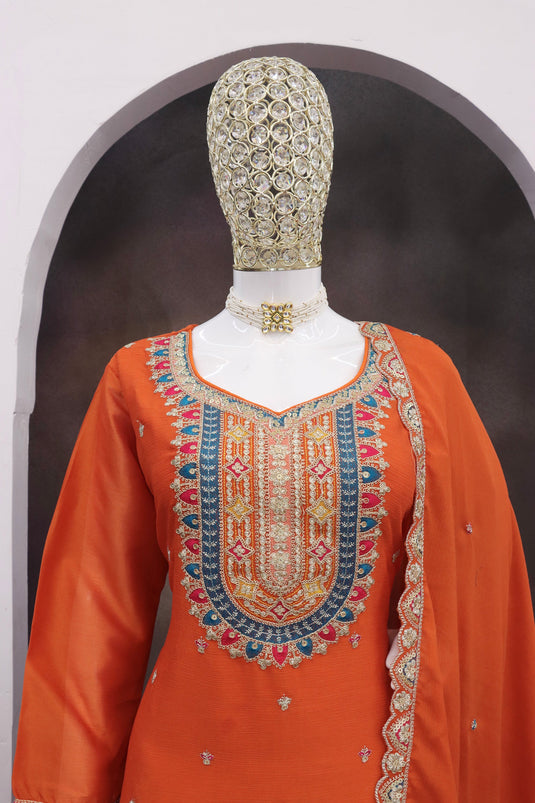 Chinon Embroidered Orange 3 Piece Readymade Palazzo Salwar Suit