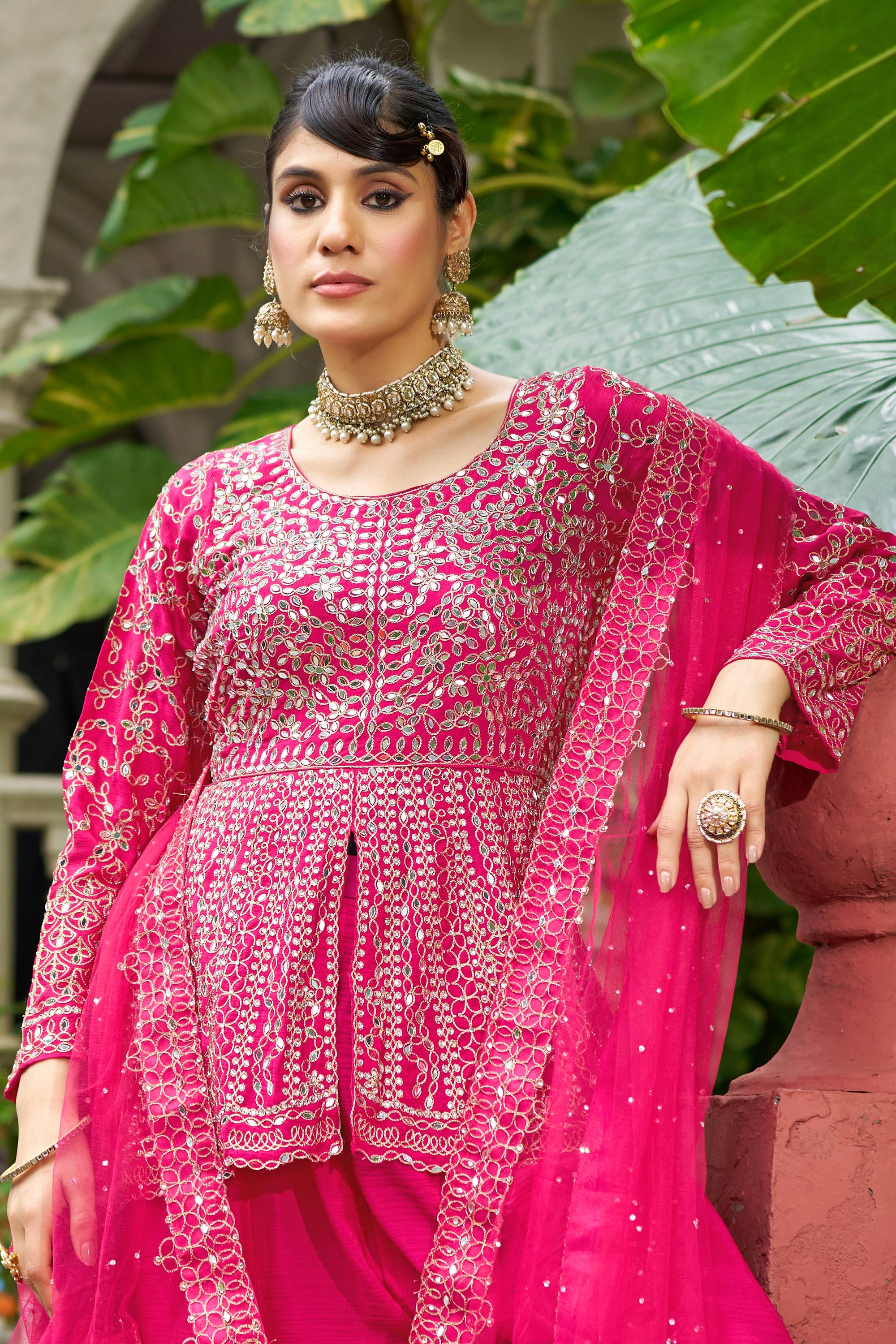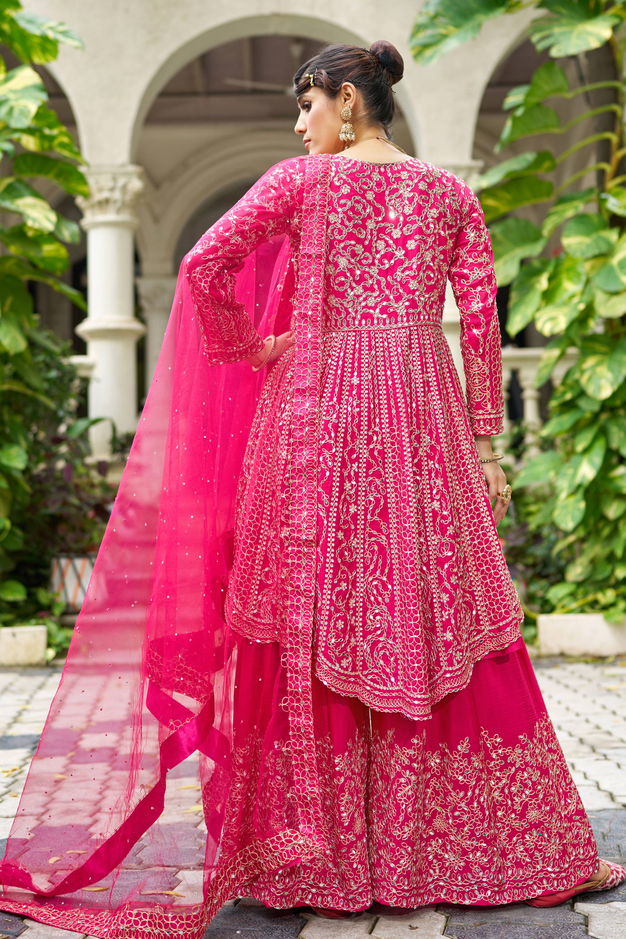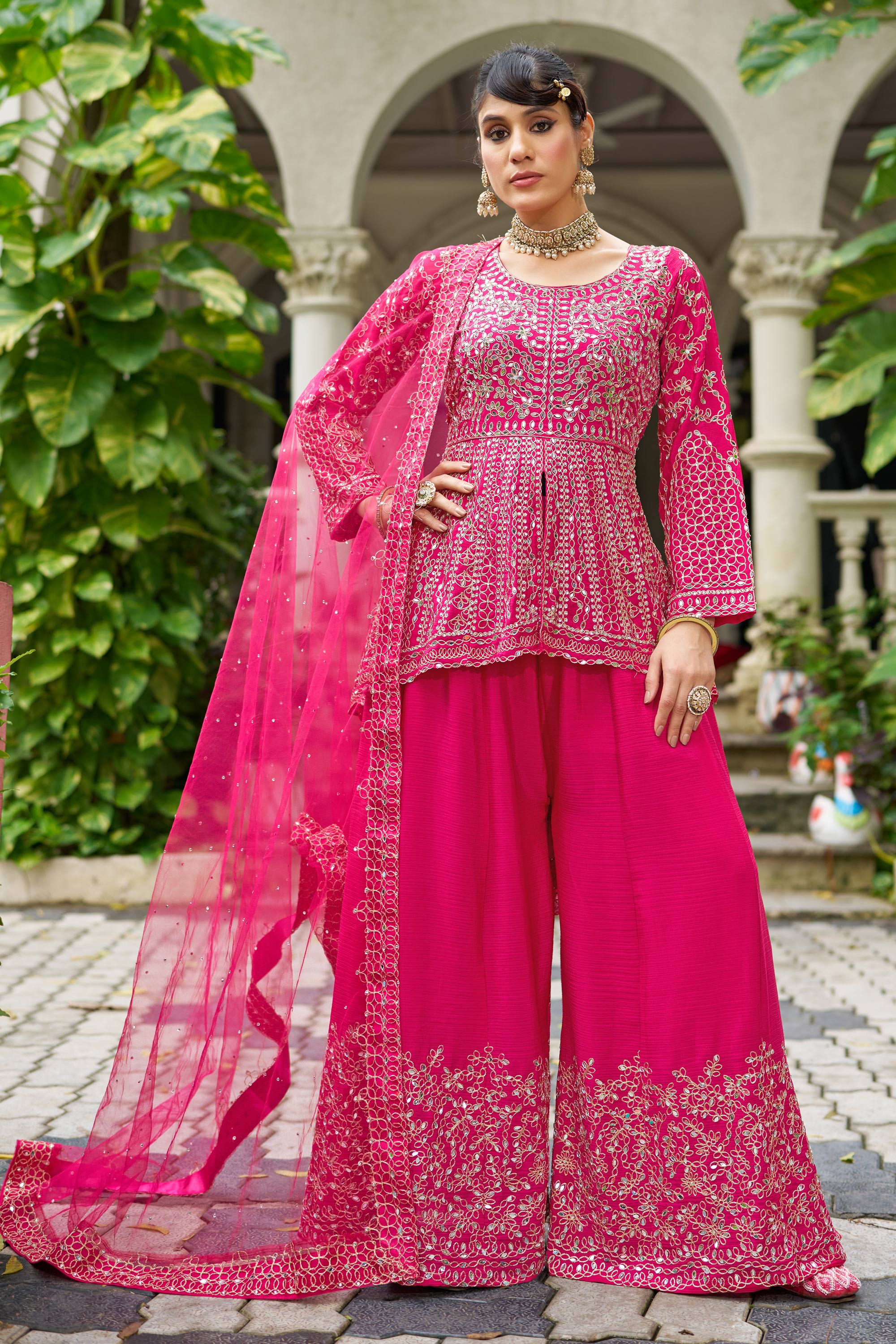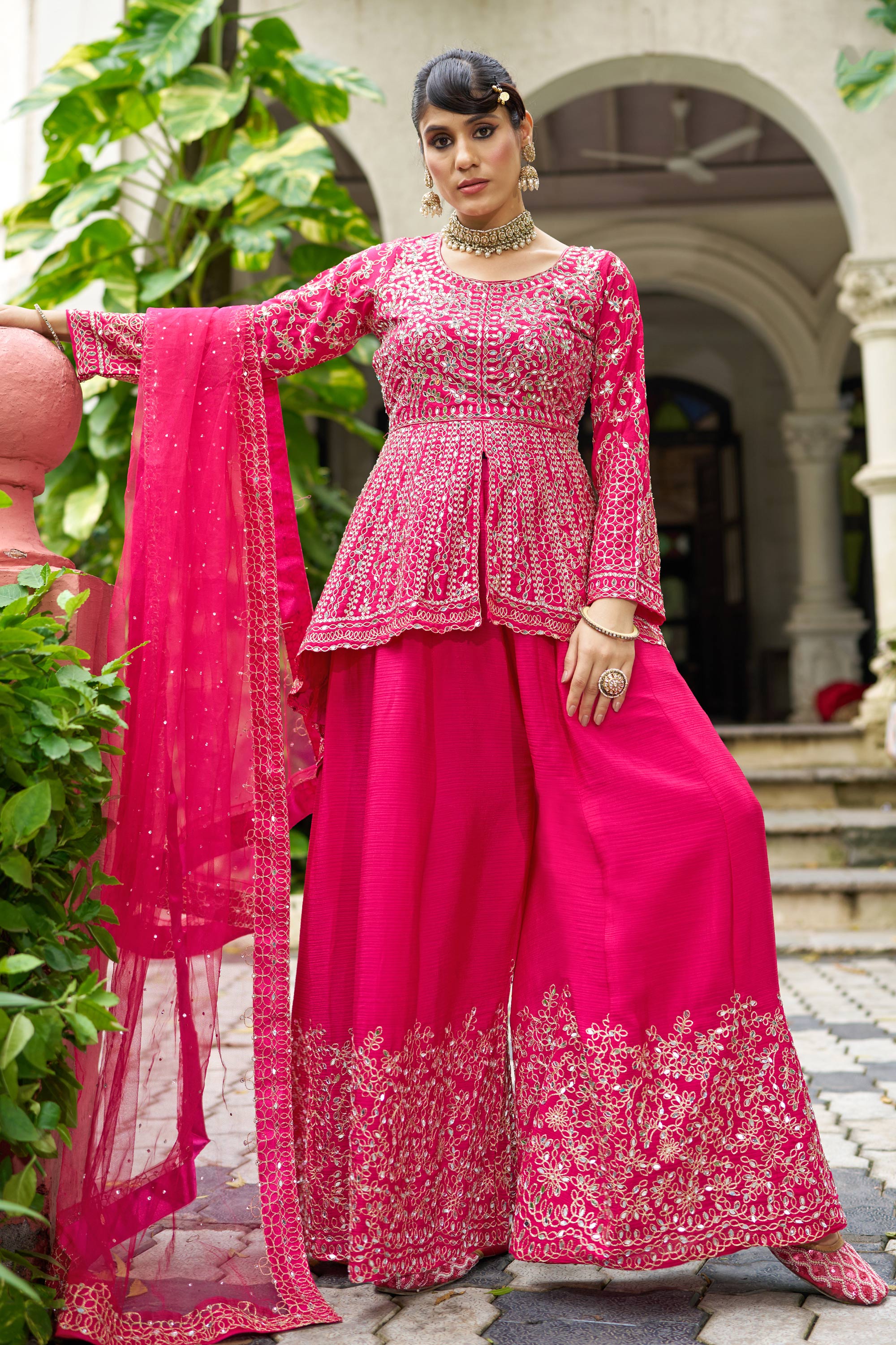 Chinon Embroidered Rani Readymade Palazzo Suit For Wedding Wear