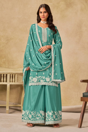 Chinon Embroidered Work Light Cyan Designer Palazzo Suit