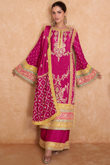 Chinon Fabric Embroidered Rani Color Readymade Palazzo Suit