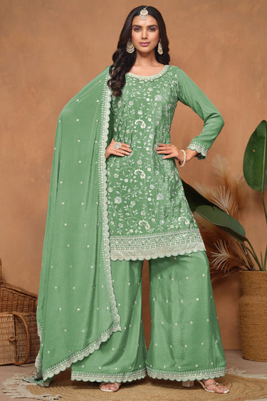 Chinon Fabric Green Color Function Special Elegant Palazzo Suit